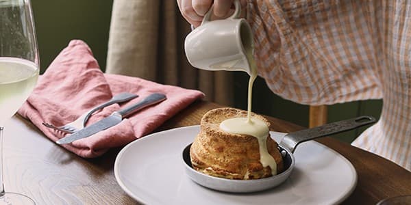 Our twice-baked cheese soufflé is an iconic dish here at The British Queen – light, airy, and so utterly delicious.